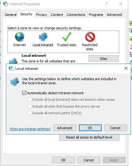 An error caused by the server is name and/or IP address not being in the Local Intranet zone in Internet Explorer settings.
